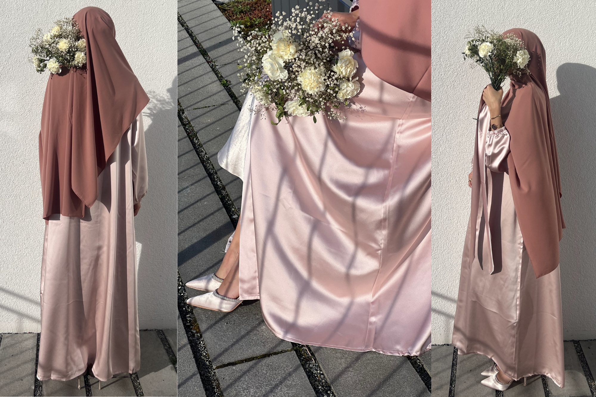Unsere Satin Abaya in Beige erfreut sich als Kundenfavorit und Bestseller großer Beliebtheit